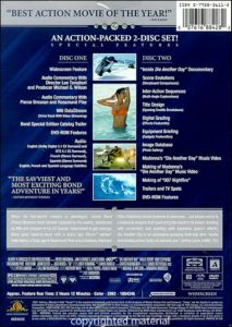 Disc 1: Audio Commentary With Director Lee Tamahori and Producer Michael G. Wilson Audio Commentary With Pierce Brosnan and Rosamund Pike M16 DataStream (Trivia Track With Video Streaming) Bond Special Edition Catalog Trailer DVD-Rom Features
